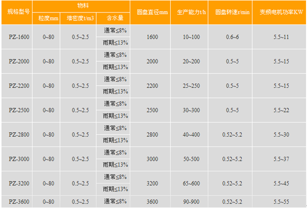 PZ型臥式圓盤給料機技術(shù)參數(shù):