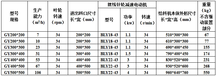GY型葉輪給料機技術參數(shù):
