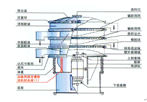 振動篩分過濾機(jī)的基本原理系電機(jī)上下端所安裝的重錘(不平衡重錘),將電機(jī)的運(yùn)動轉(zhuǎn)變?yōu)樗健⒋怪眱A斜的三次元運(yùn)動 , 再把這個(gè)運(yùn)動傳遞給網(wǎng)面。改變電機(jī)上下重錘的相位角可以改變原料的運(yùn)動方向。