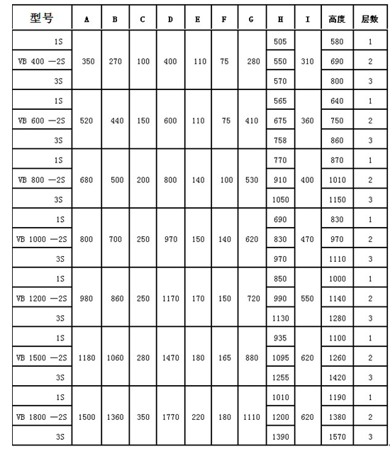 VB系列三次元振動篩標(biāo)準(zhǔn)機(jī)器尺寸圖: